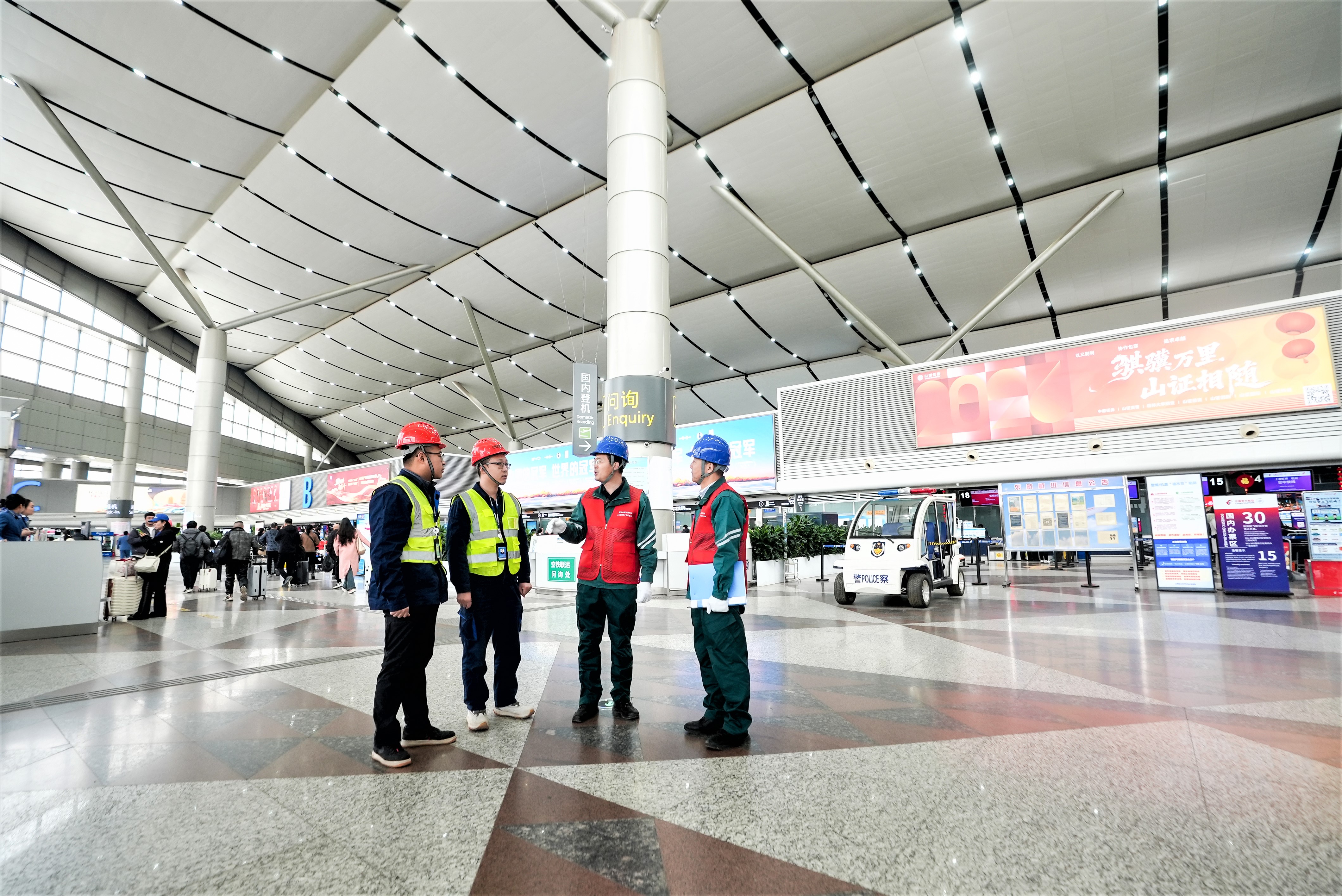 春節(jié)前夕,國網(wǎng)太原供電公司工作人員到太原武宿國際機(jī)場走訪,協(xié)助機(jī)場工作人員檢查供電設(shè)備,為春運(yùn)客流高峰期提供充足電力保障。